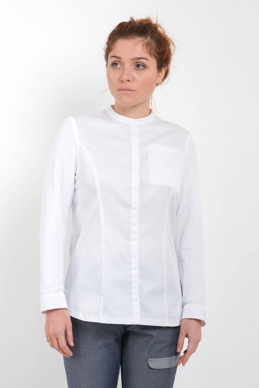 De koksbuis EDERRA wit in het stretch keukenjas is ontworpen in samenwerking met Xavier Isabal, charismatische chef-kok van het sterrenrestaurant Ithurria gelegen in het dorp Aïnhoa. Modern, sober en technisch, dit getailleerde jasje wordt dicht op het lichaam gedragen zonder te strak te zitten.