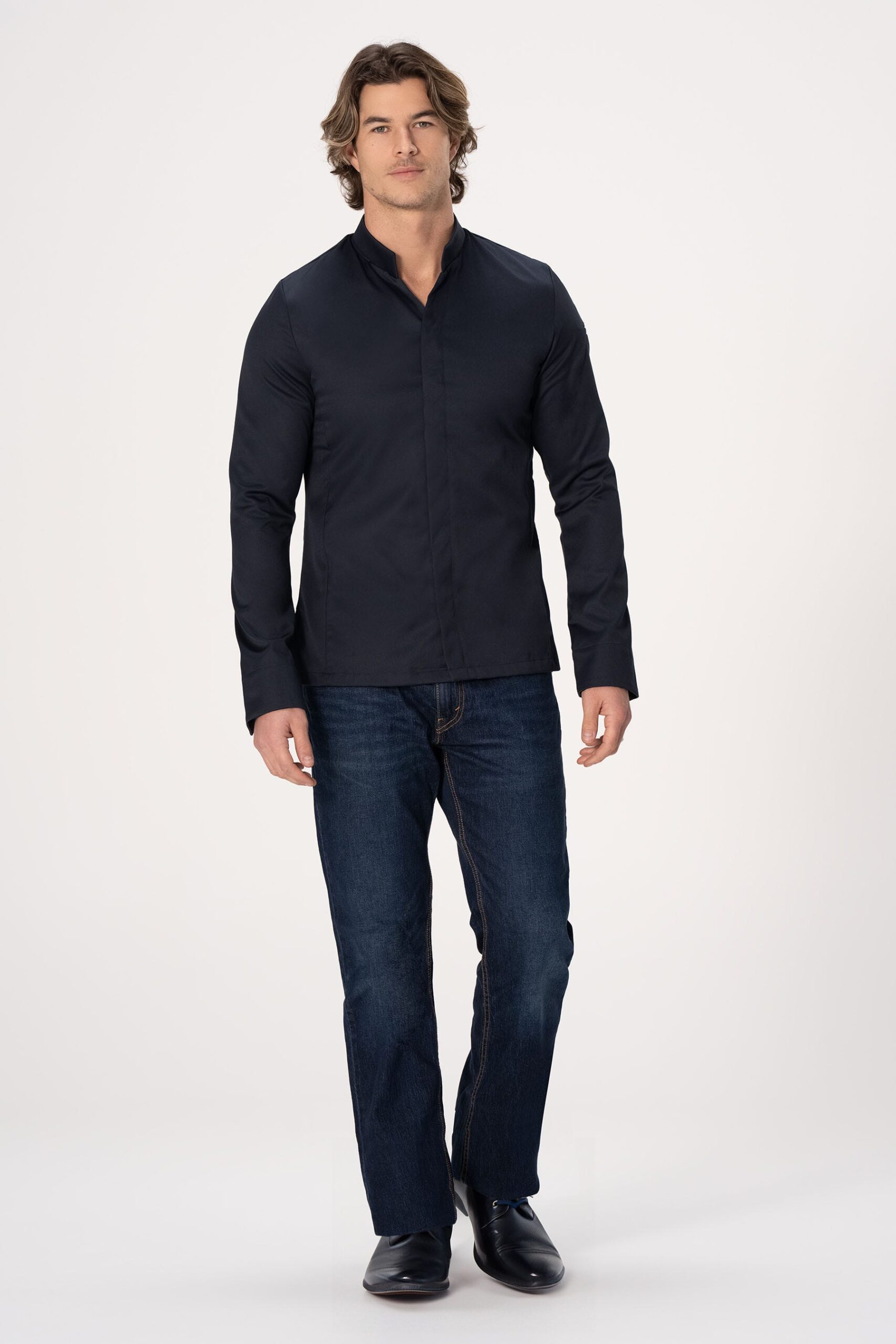 Dankzij de drukknoopsluiting biedt deze jas gemak zonder in te leveren op stijl. Gewoon vastklikken en klaar, en u behoudt een verzorgde uitstraling, zelfs in de hitte van de keuken. De lange mouwen met Franse manchetten voegen een vleugje elegantie toe, perfect voor chefs die alleen het beste willen.