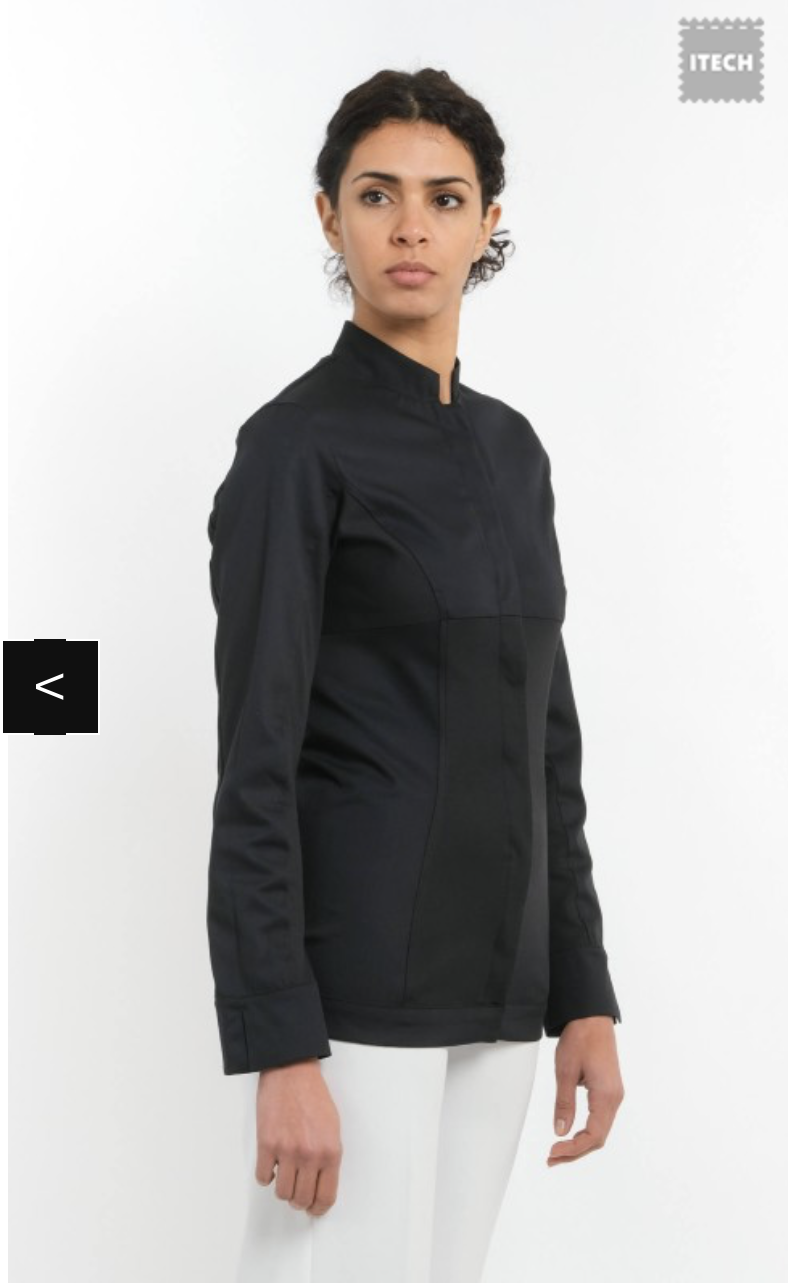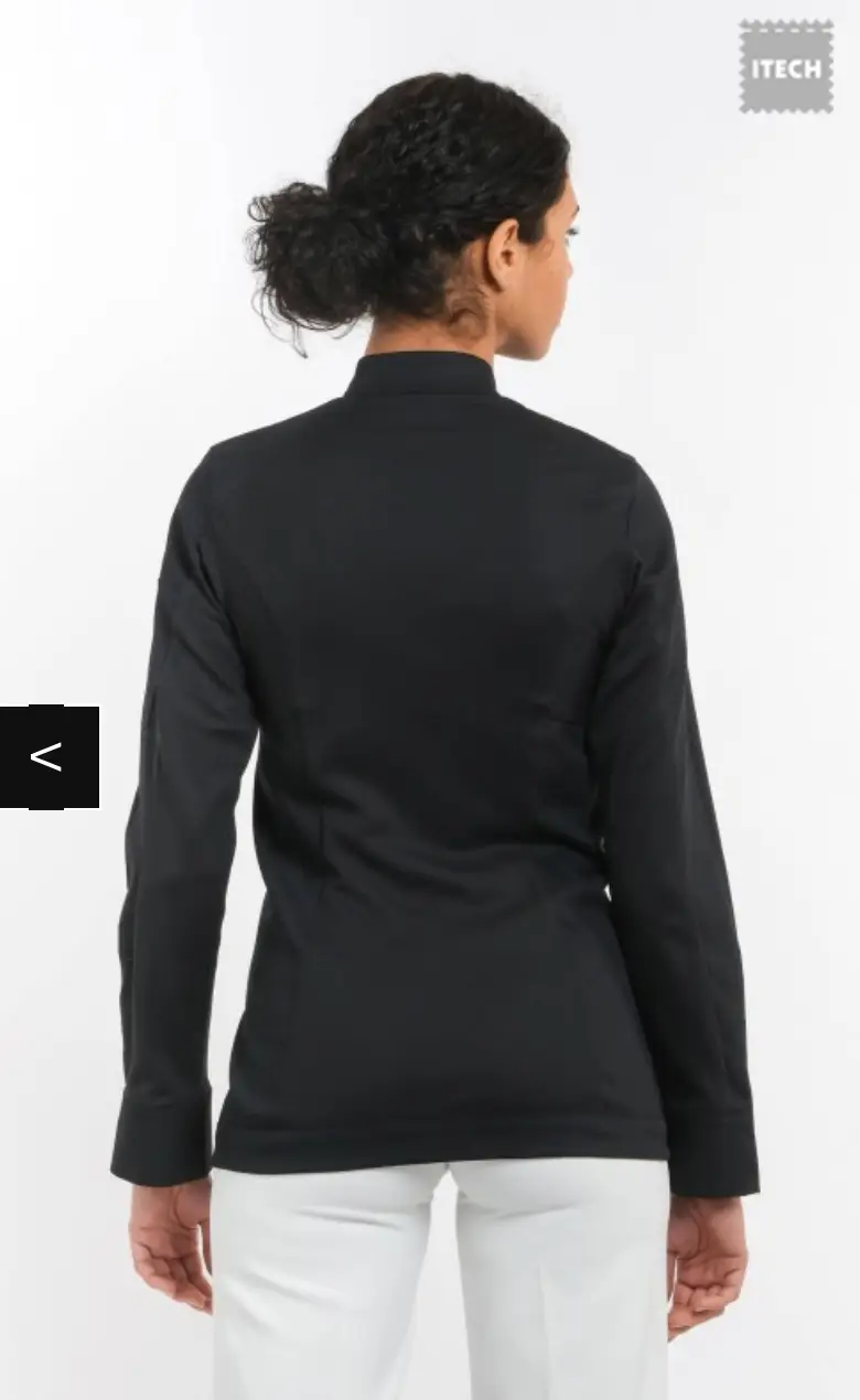 De IMPULSE dameskoksjas, verkrijgbaar in wit of zwart, heeft een getailleerde, technische en zeer urban stijl.