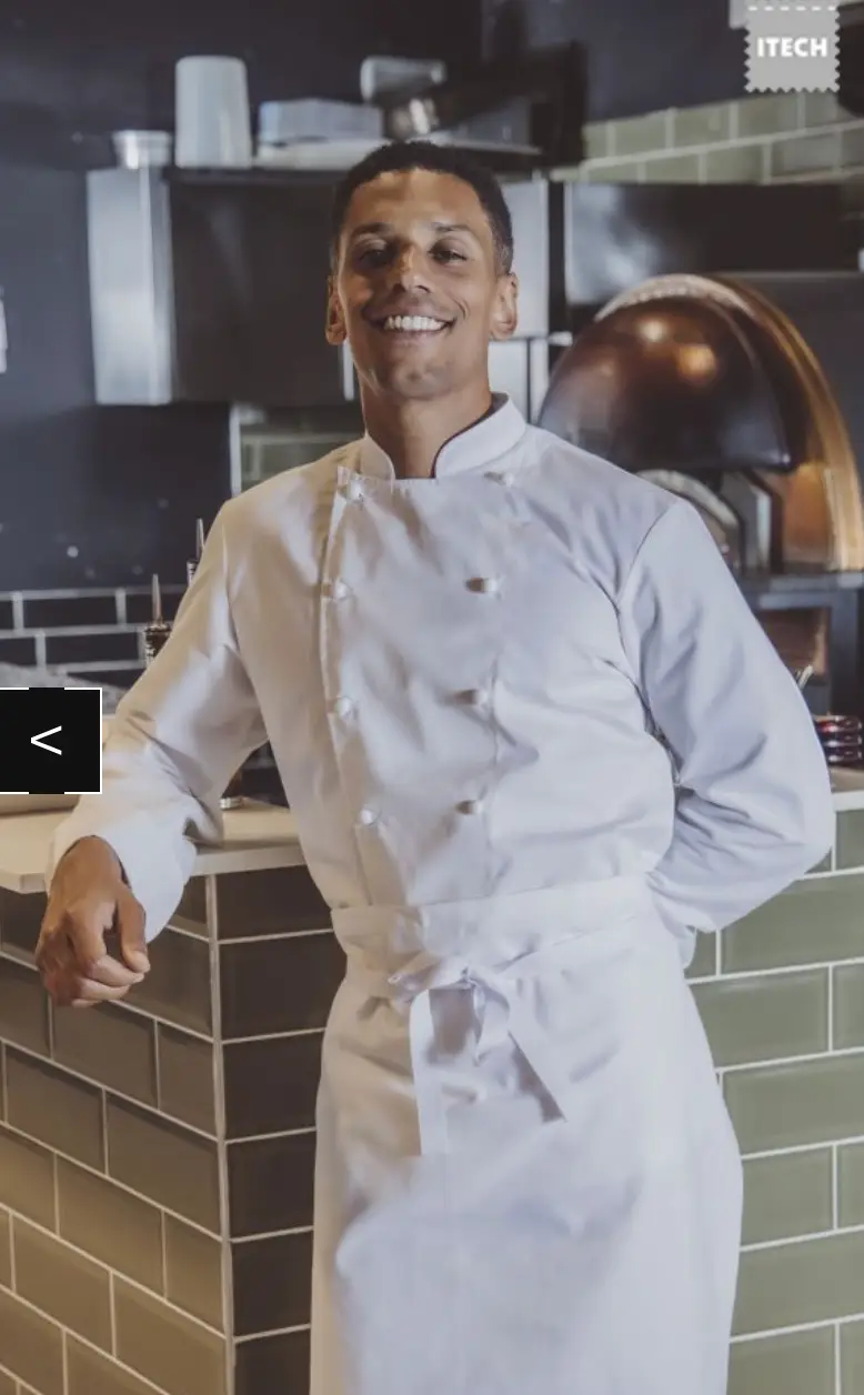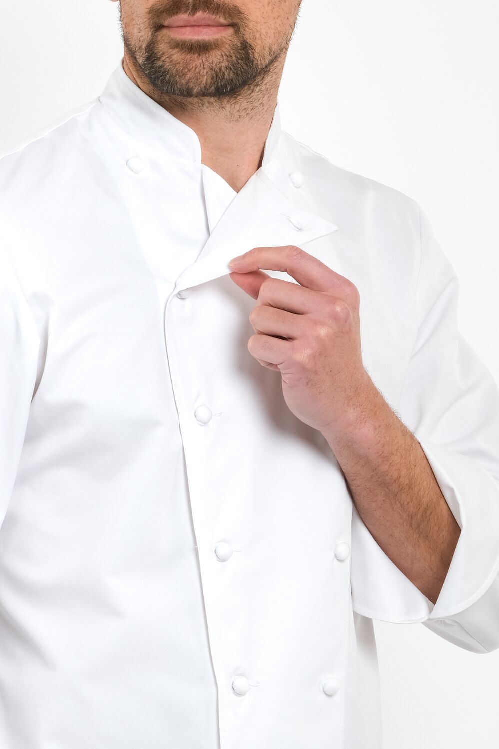 Bijzonder mooie koksjas in een voor de chefs een bekende pasvorm.